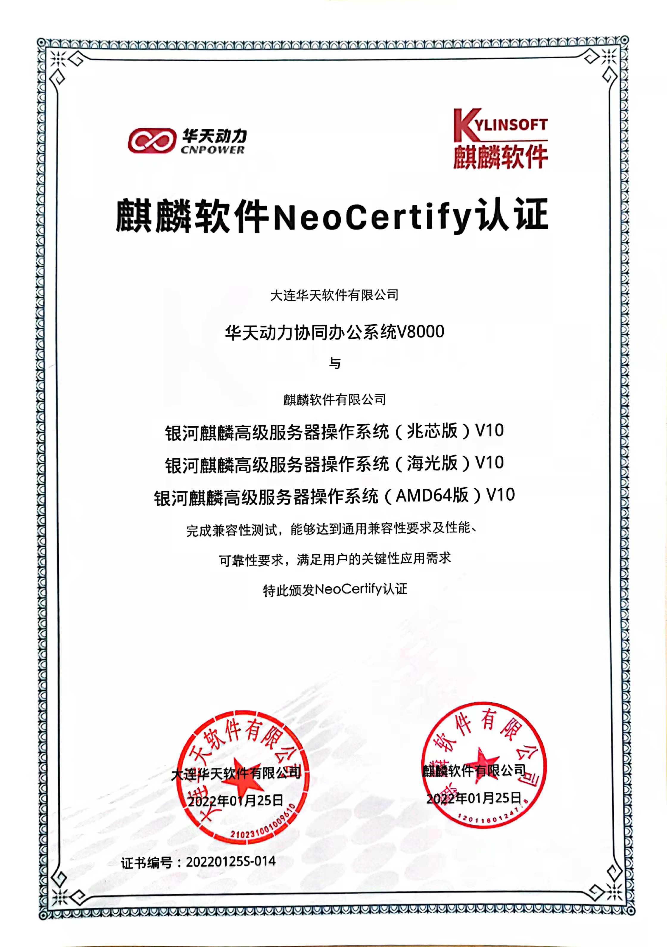 華天動力OA系統與麒麟軟件再度合作完成兼容認證